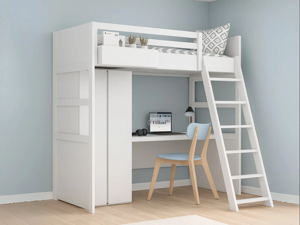 | Špeciálne vlastnosti: | rebrík, písací stôl a šatníková skriňa je možné namontovať na ľavú či pravú stranu, nábytok nemá žiadne viditeľné skrutky alebo spoje, ručná výroba |