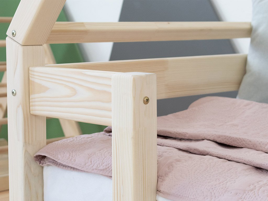 Detská domčeková posteľ TAHUKA v tvare típí s bezpečnostnou zábranou