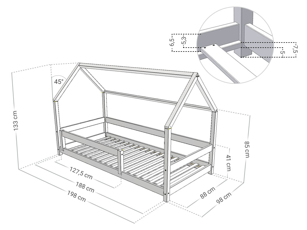 | Odporúčame: | Od 3 rokov. Pre deti 3–6 rokov či drobnejšie deti odporúčame pre väčšie pohodlie a bezpečie použiť medzi matrac a rám napr. mäkký mantinel. |