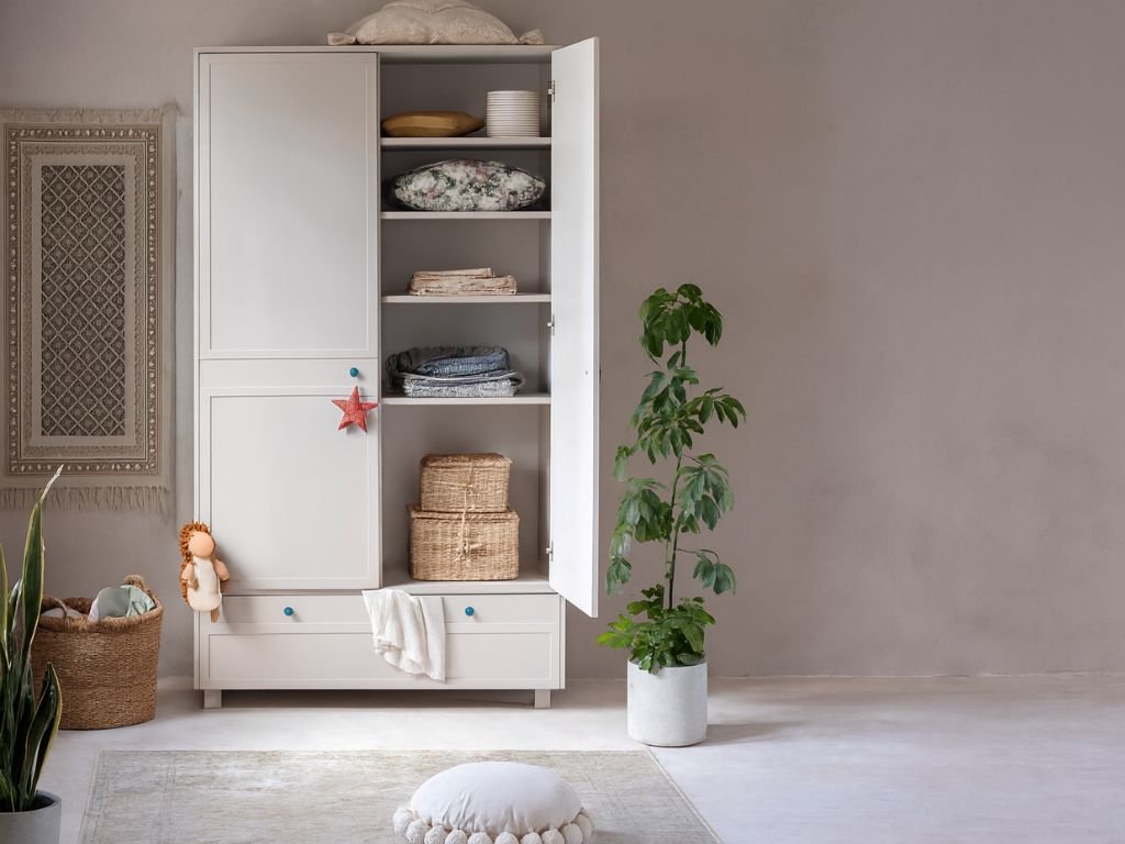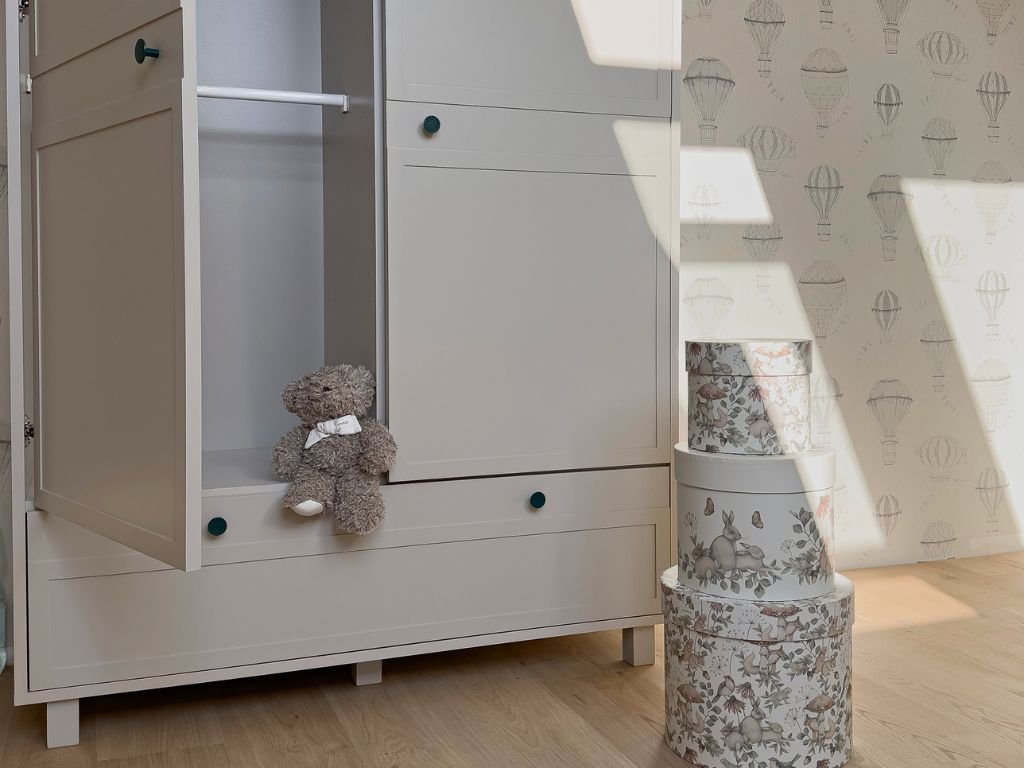 Detská šatníková skriňa so šuplíkom, tyčami a policami VINTAGE kašmírová