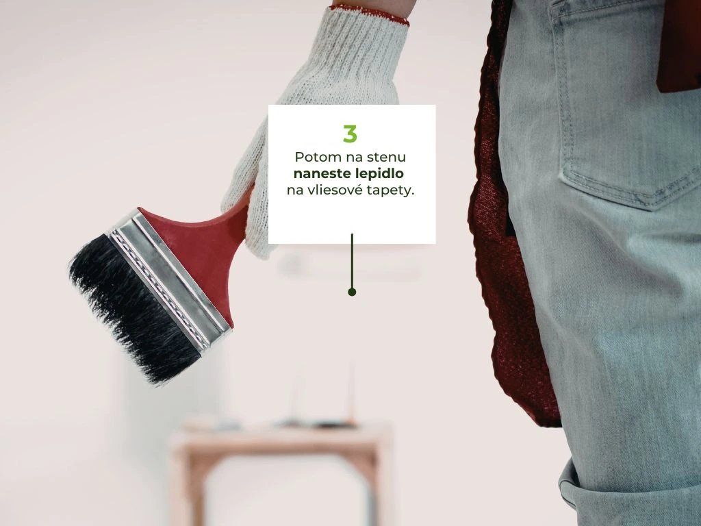 Potom na stenu naneste lepidlo na vliesové tapety.