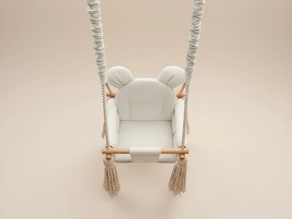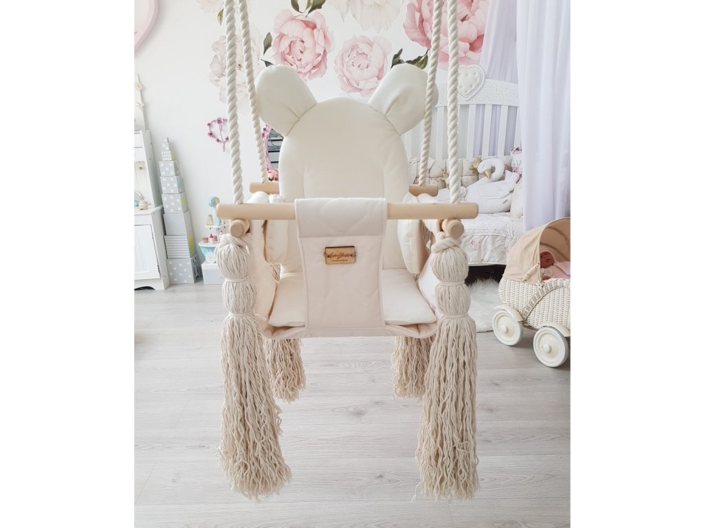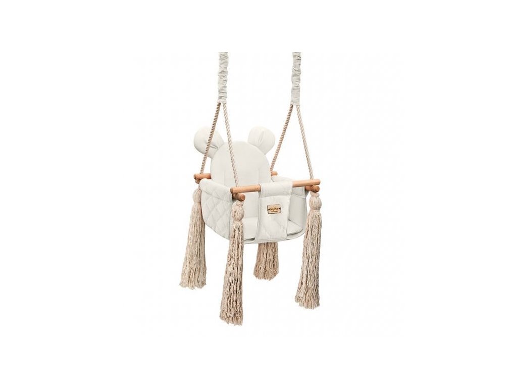 Detská bezpečná hojdačka s uškami VELVET SWING do interiéru KRÉMOVÁ