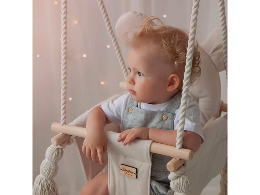 Detská závesná hojdačka KRÉMOVÁ pre batoľatá i väčšie deti