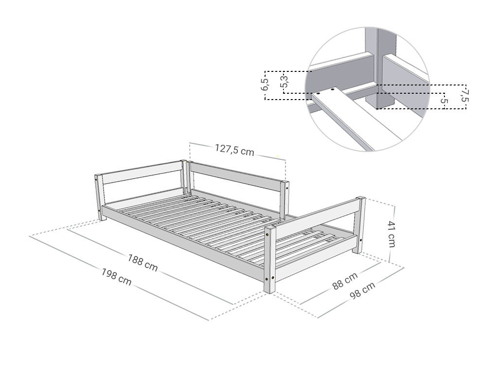 Zvolený rozmer zodpovedá vnútornému priestoru postele a zároveň rozmerom vhodného matraca.