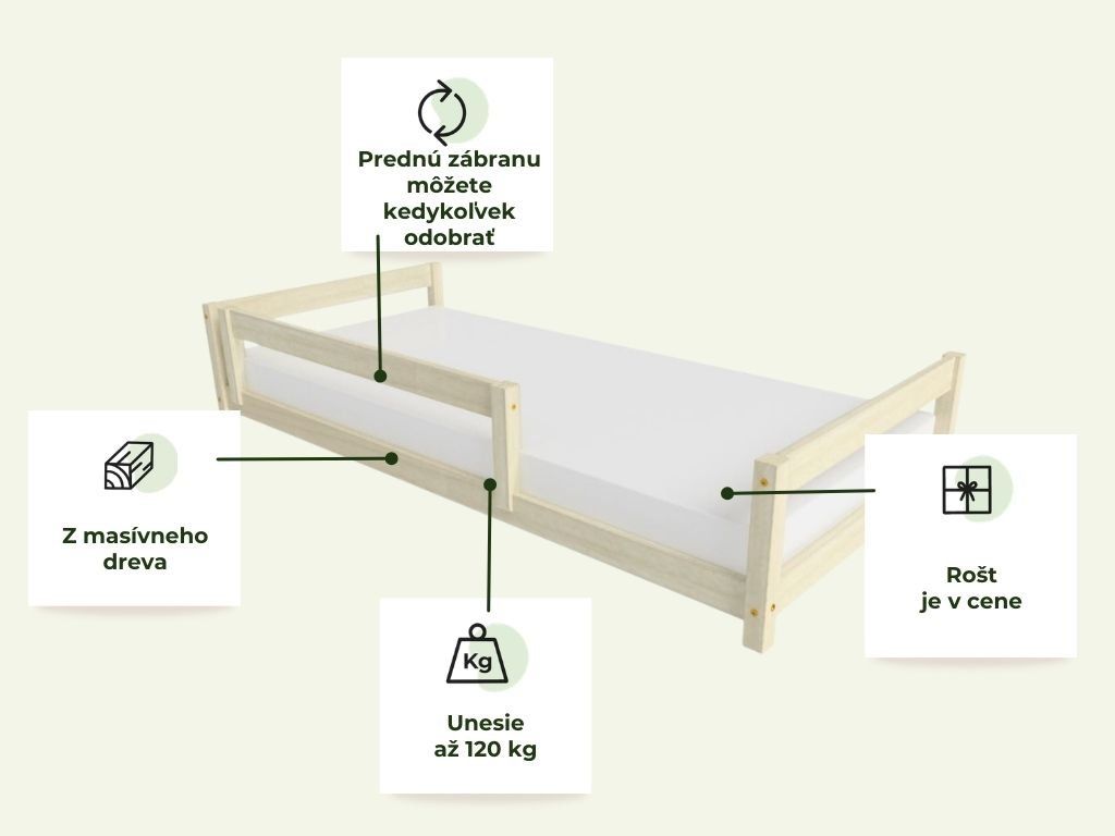 Detské drevené jednolôžko s dvoma čelami LUCKY