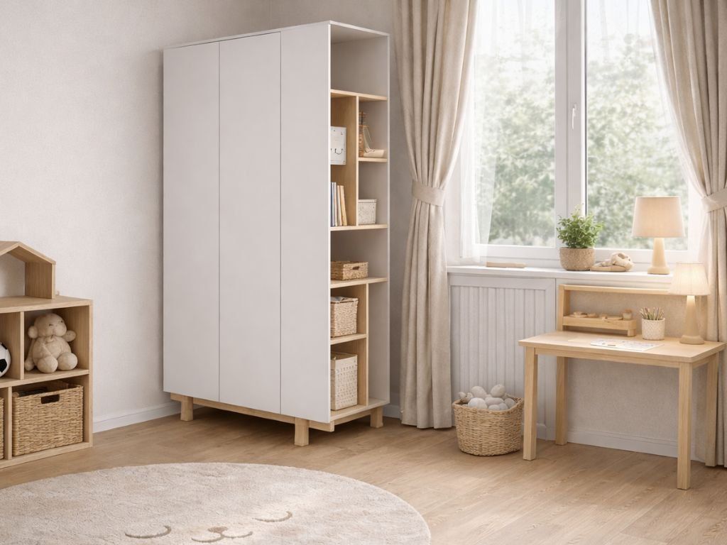 Dizajnová šatníková skriňa s otvoreným regálom BASIC biela