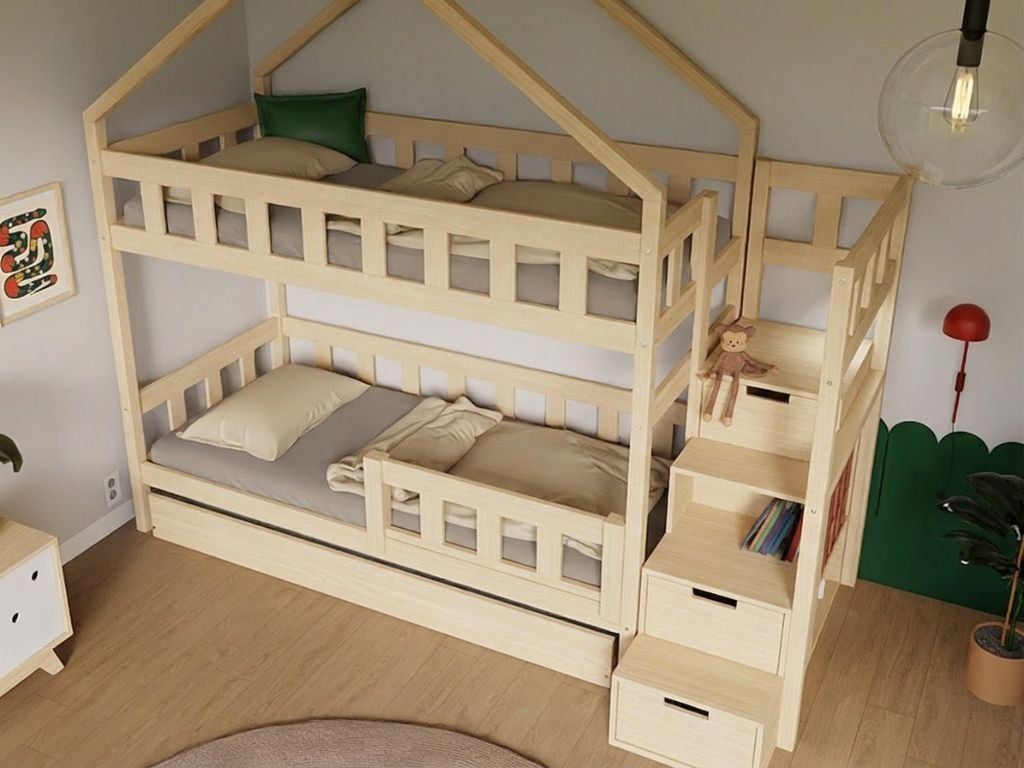 Domčeková poschodová posteľ PLOTTY s úložnými schodmi 90x200 cm