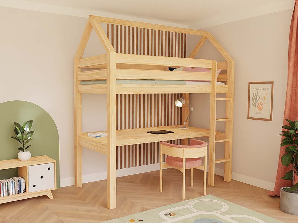 Domčeková zvýšená posteľ MANASLU s rebríkom a písacím stolom 90x200 cm