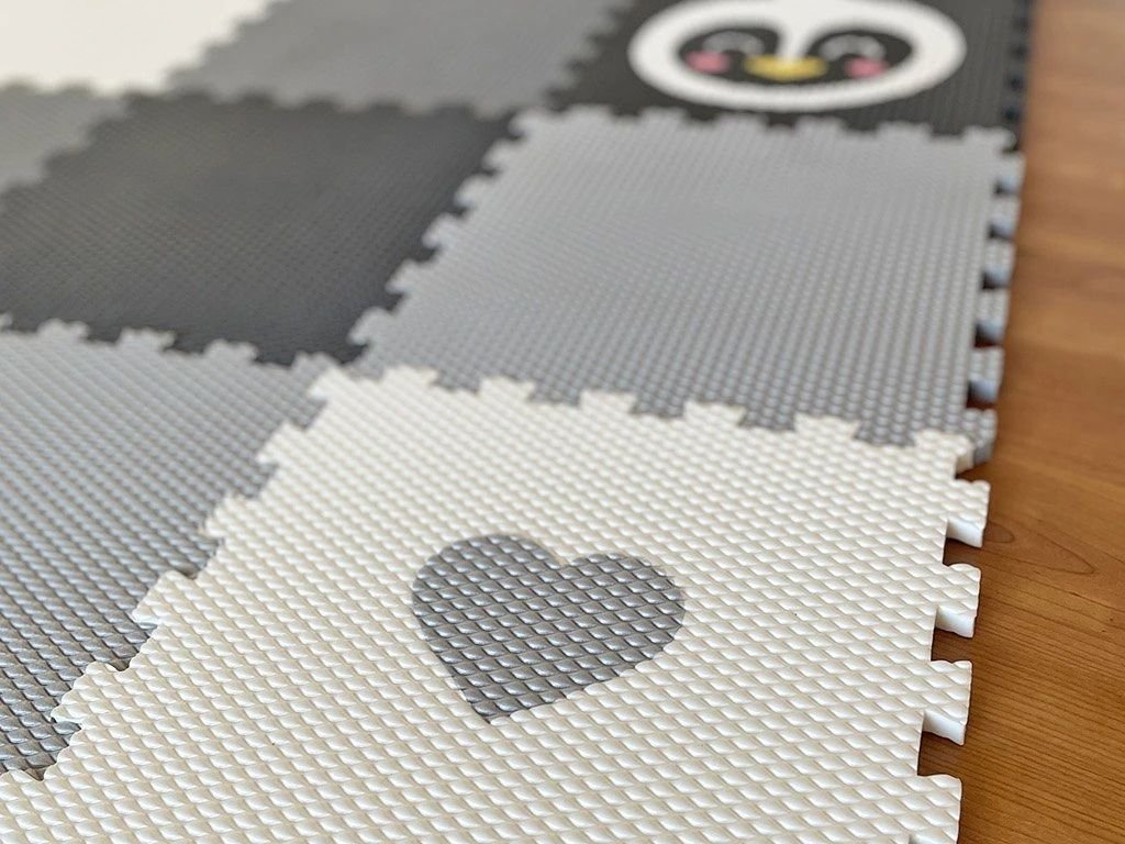 | Sada obsahuje: | 12 podlahových dielov (2 ks bielej, 3 ks šedej, 2 ks svetlo šedej, 1 ks čiernej, 1ks tučniak, 2 ks srdca) |