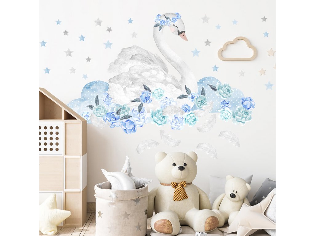 Nástenné samolepky LABUŤ do detskej izby MODRÁ