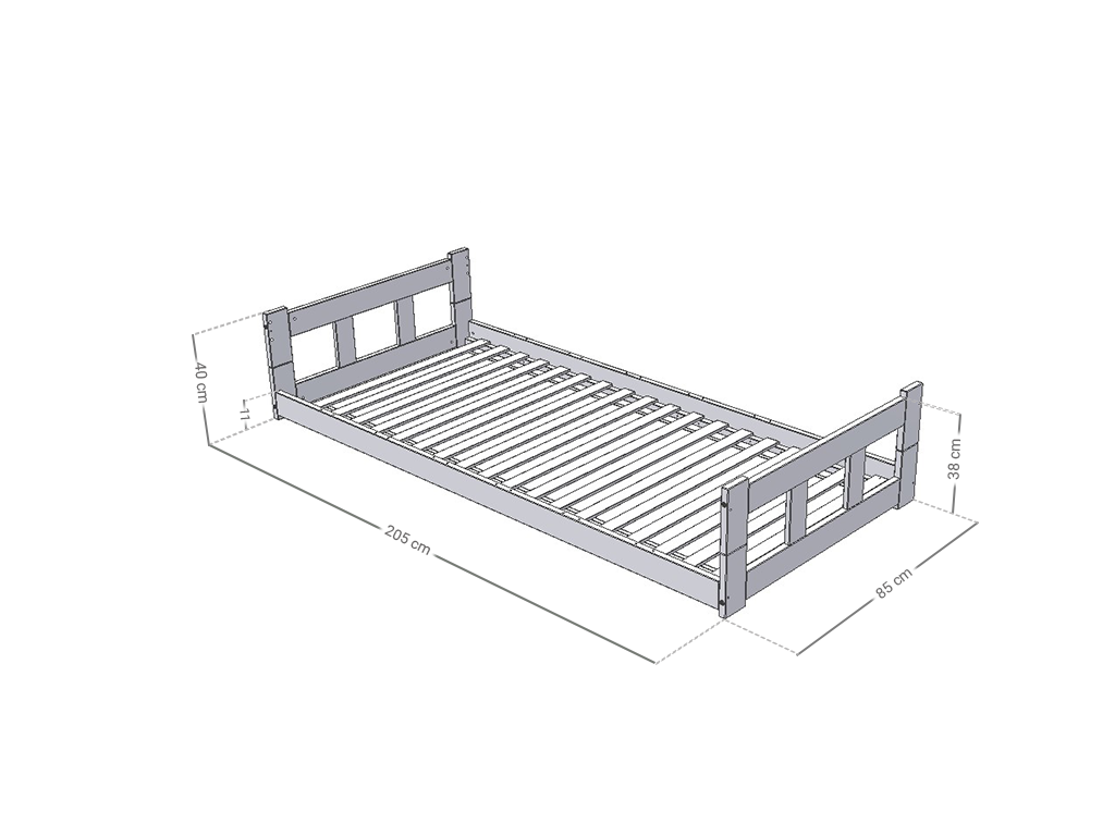 Nízke jednolôžko s čelami FENCE 2v1 z dreva
