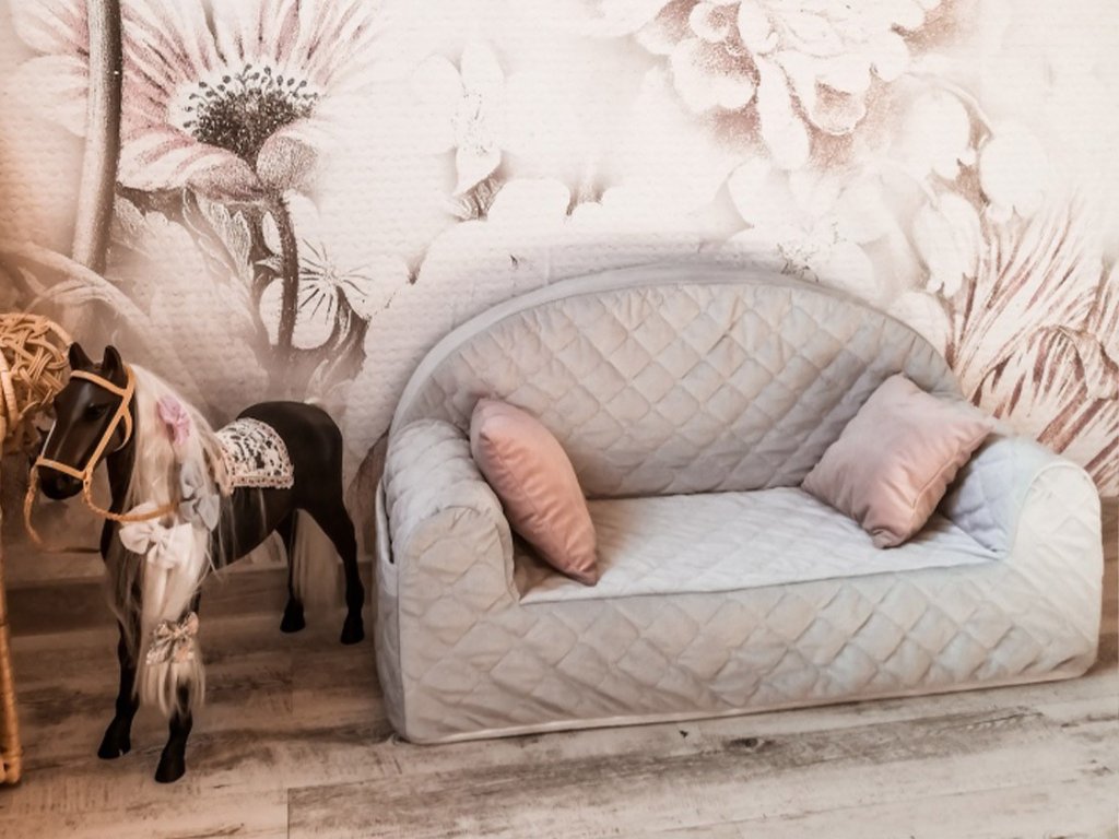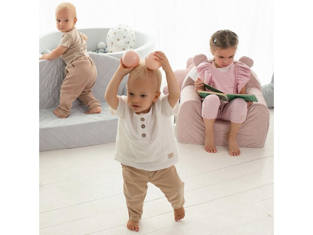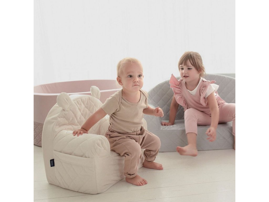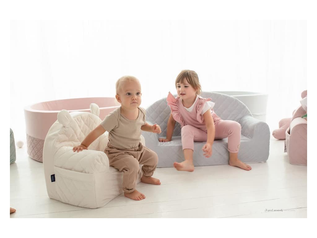 Pohodlná detská pohovka s vreckami ŠEDÁ