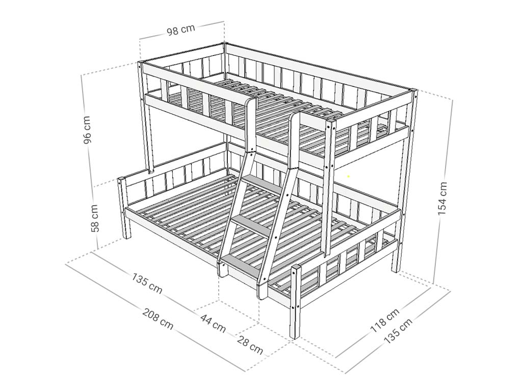 Horné lôžko vhodné: pre deti od 6 rokov podľa normy EN 747-1, pre deti s drobnejšou postavou odporúčame mäkký mantinel medzi matrac a rám pre väčšie pohodlie a bezpečie.