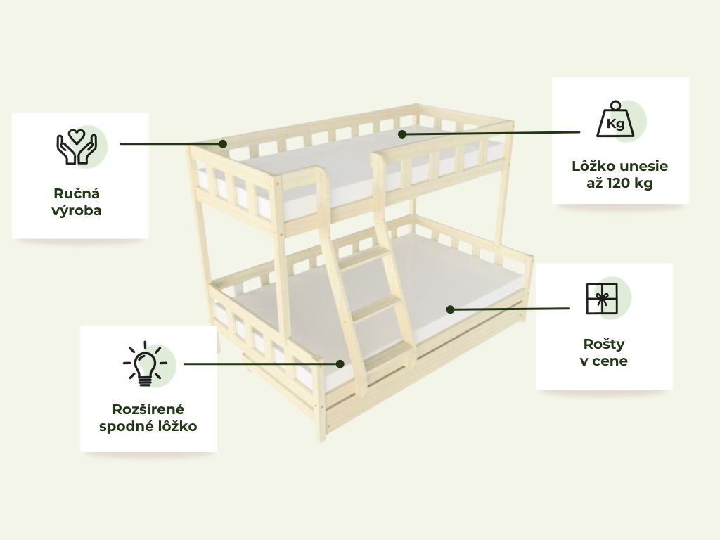 nosnost Spodné aj horné lôžko unesie až 120 kg