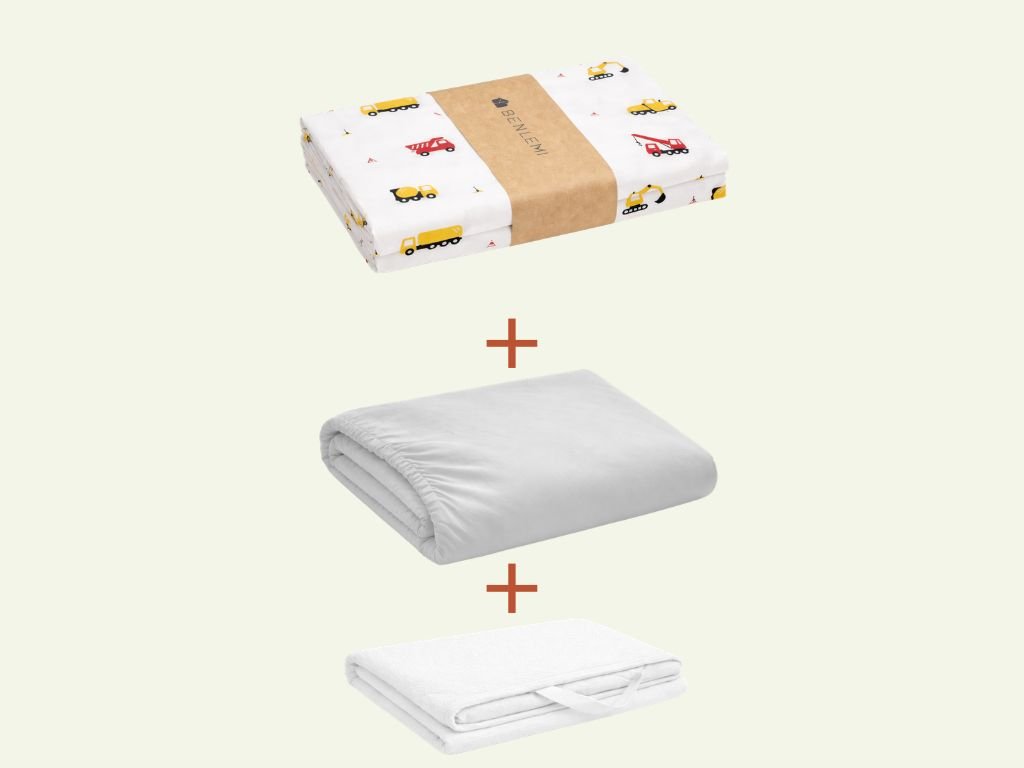 | Sada obsahuje: | 1× obliečka na vankúš 70×90 cm a prikrývku 140×200 cm, 1× svetlosivé prestieradlo, 1× chránič matraca |