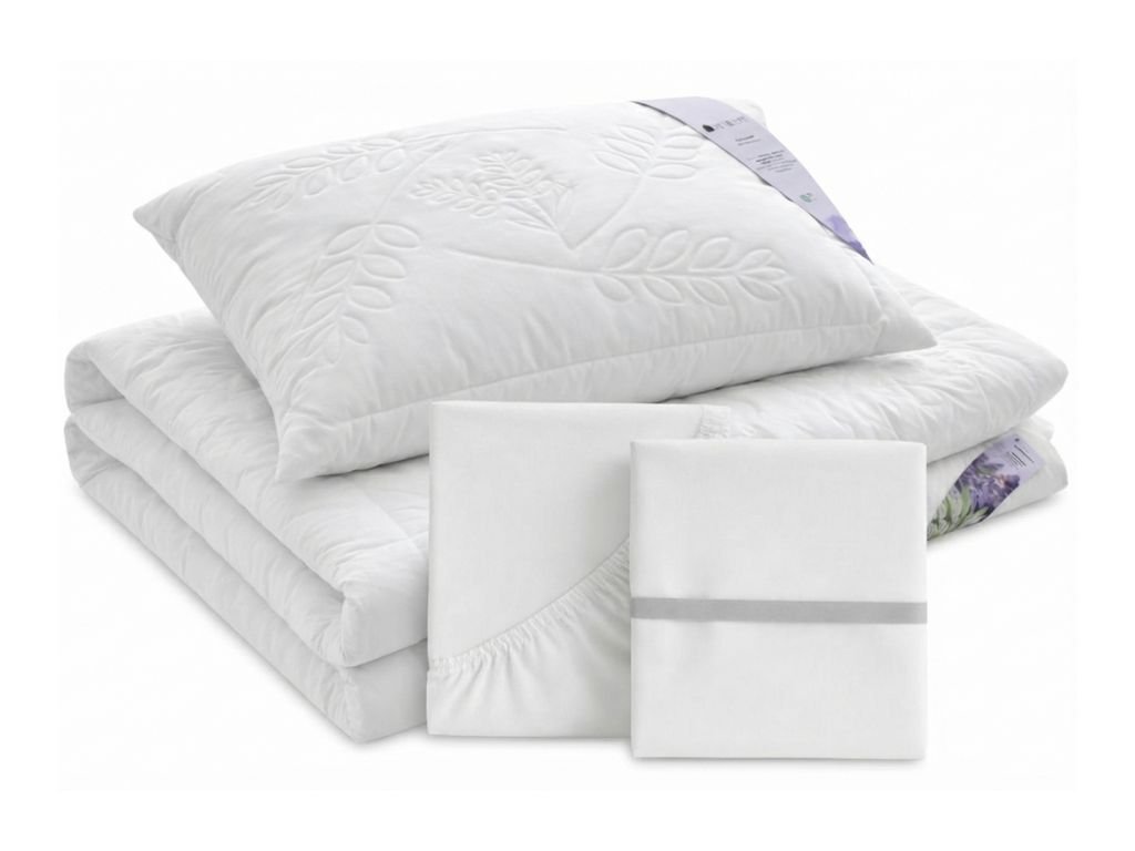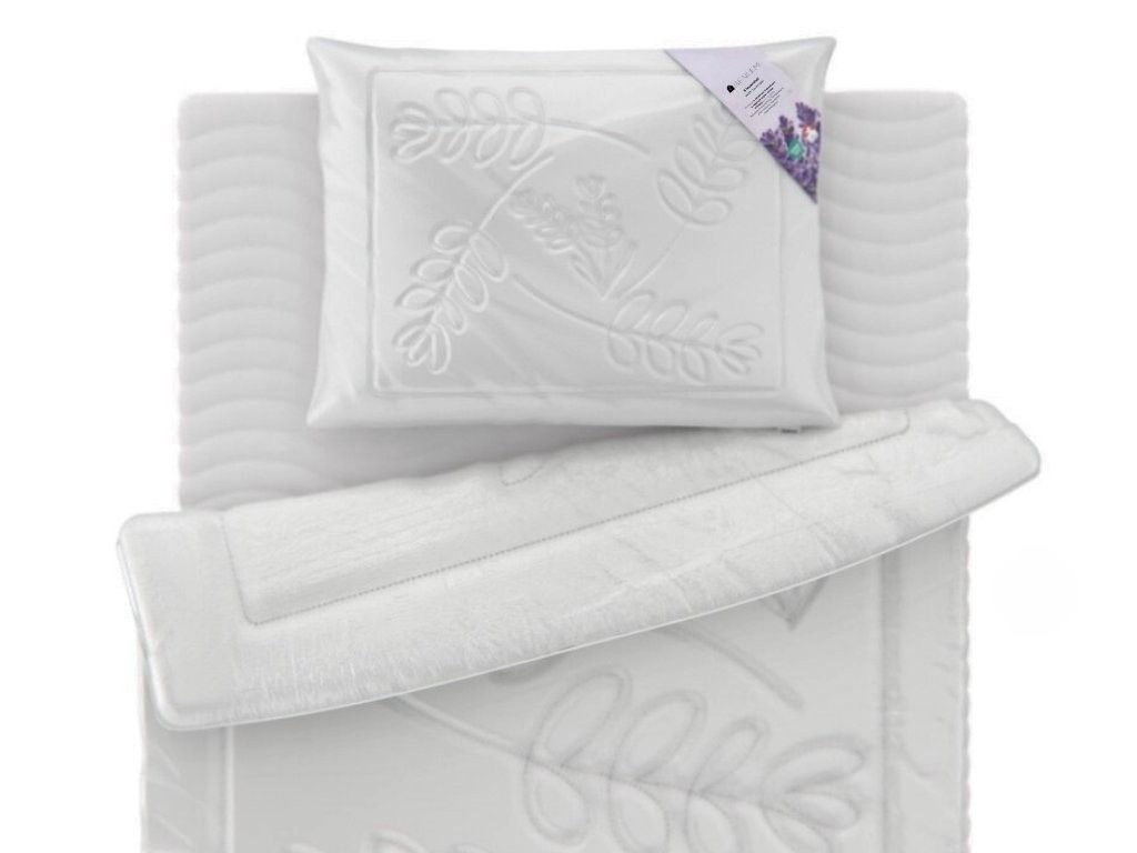 | Sada obsahuje: | 1× vankúš 70×90 cm a prikrývku 140×200 cm, 1× biele prestieradlo, 1× chránič matraca |