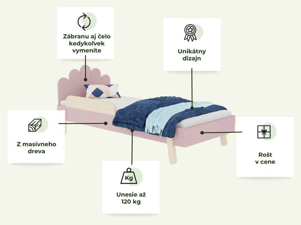 | Výška matraca: | odporúčame min. 15 cm (pri posteli so zábranou 15-18 cm) |