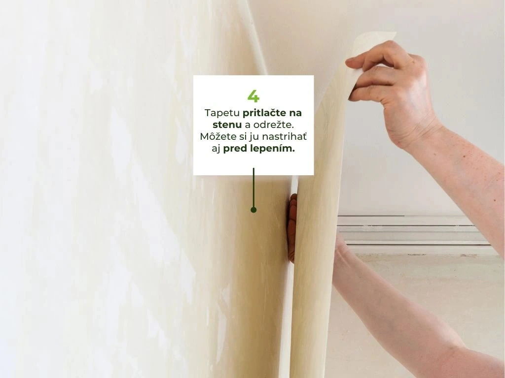 Přesah odřízněte. Nebo si můžete tapetu nastříhat předem.