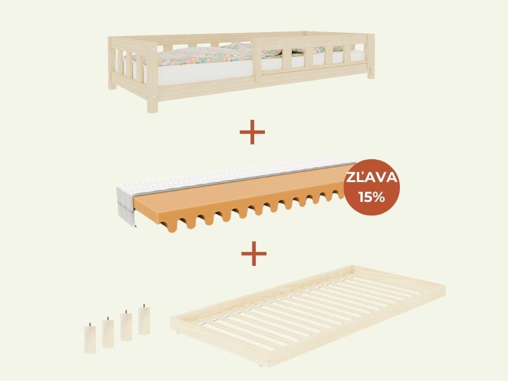 | Sada obsahuje: | Jednolôžková posteľ PLOTTY so zábranou 90x200 cm, 4× nohy BOTTY, prístelka SLEEP 90x190 cm, 1× matrac WAVE 90x200 cm |