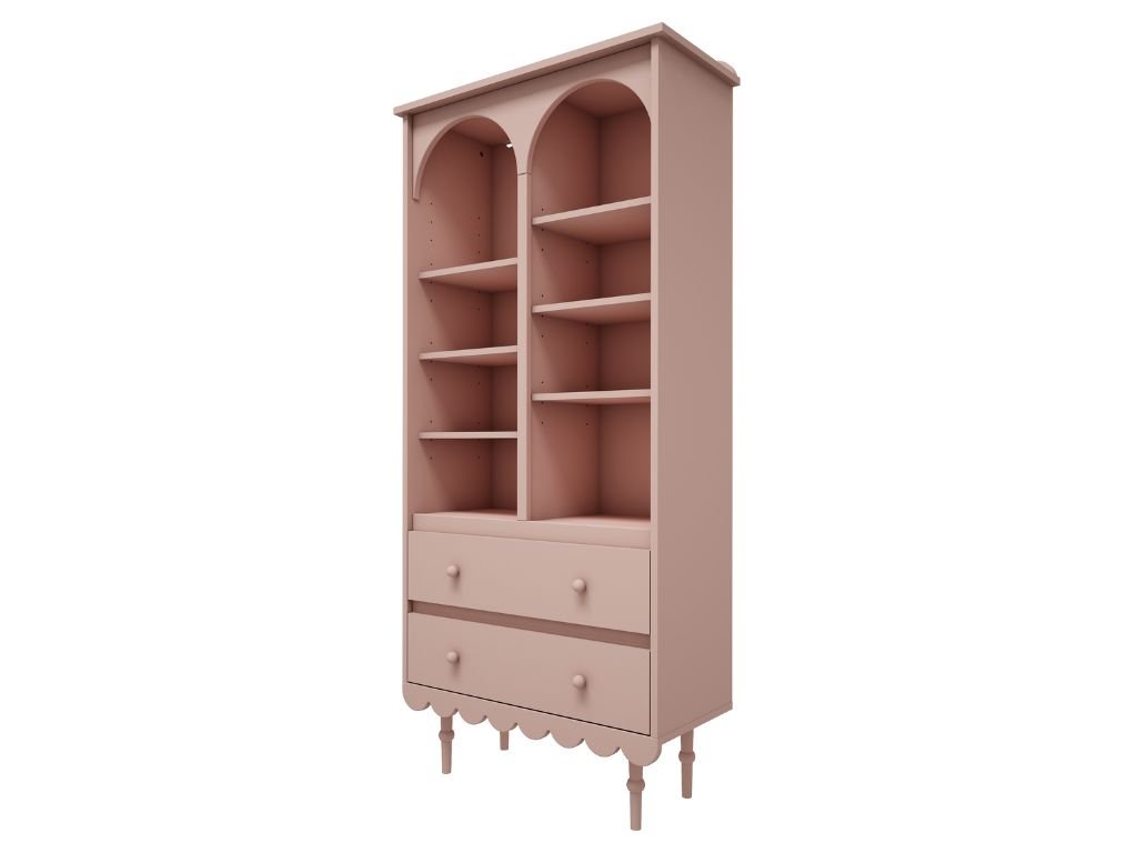 Vysoký úložný regál s policami a šuplíkom BABUSHKA koralový