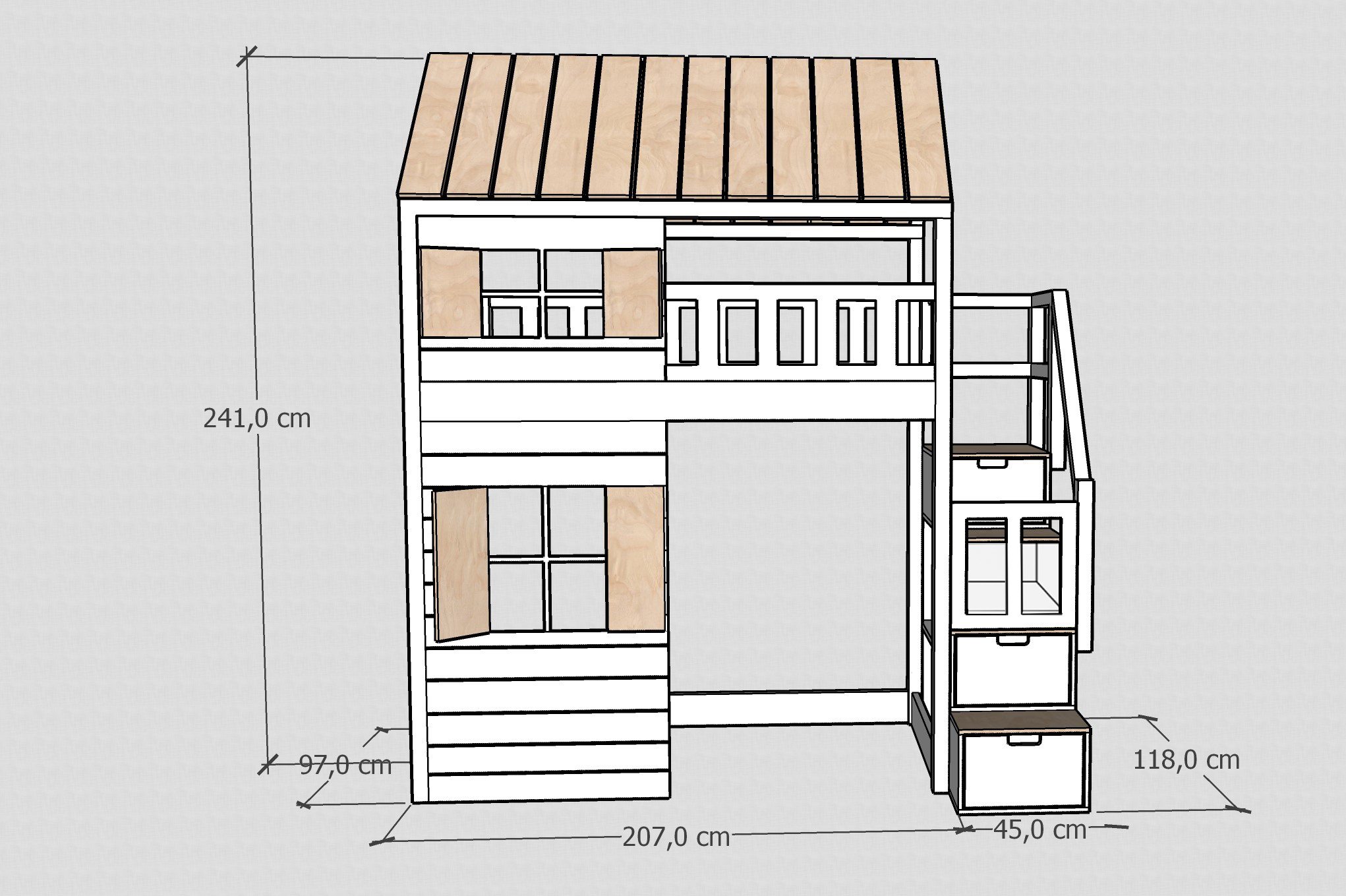 Zvýšená posteľ CHALÚPKA s úložnými schodmi 90x200 cm